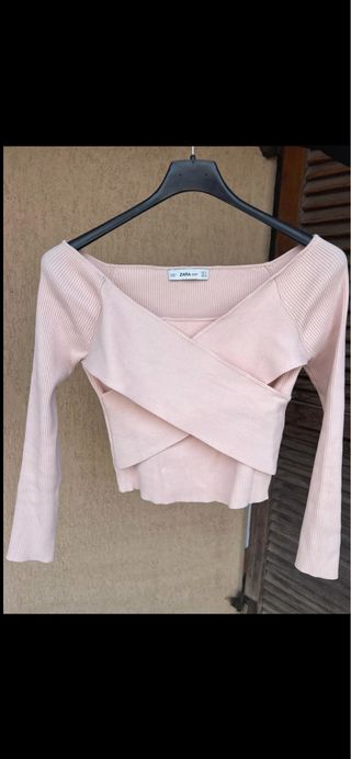 Maglia rosa manica lunga incrociata