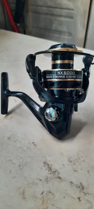 Mulinello da pesca Rooblinos, modello NX 5000. Colore nero con dettagli dorati in metallo leggero e maneggevole gr 230 circa comoda impugnatura buona capacità di carico nuovo mai usato ancora in confezione originale - Bobina con capacità per filo: - 0.30/200 m - 0.35/180 m - 0.40/140 m