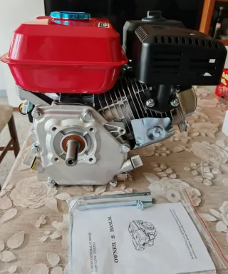 Motore a scoppio per uso generale, modello 170F con 7.5 HP di potenza. - Serbatoio rosso. - Etichetta Durability Test Label inclusa. - Manuale Owner's Manual per motore a benzina serie General Purpose fornito.