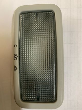 Plafoniera interna per auto Volkswagen. - Copertura in plastica grigia. - Lente trasparente con motivo a nido d'ape. - Simboli per interruttore luce e portiera.