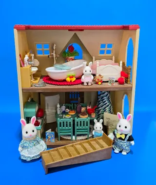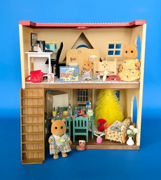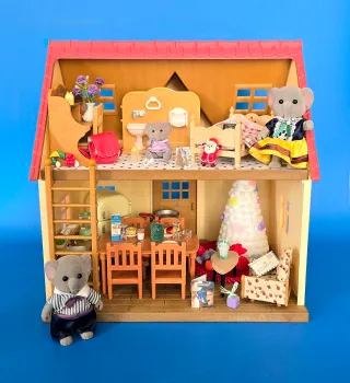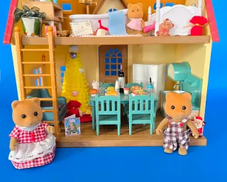 É arrivato il Natale alla Casa Sulvanian mod. 2023. Ottime condizioni generali. Sono compresi tutti gli arredi, gli accessori presenti in foto ed i 4 personaggi. E incluso anche il bagno con vasca centrale e la cucina super attrezzata. L'albero di Natale è un pezzo unico, realizzato a mano. Vedi tutte le foto per i dettagli. Il pavimento del secondo piano si può togliere e posizionare davanti alla casetta per ampliare lo spazio di gioco. Spedizione veloce ed imballaggio accurato. Molti altri Sulvanian nel mio armadio.