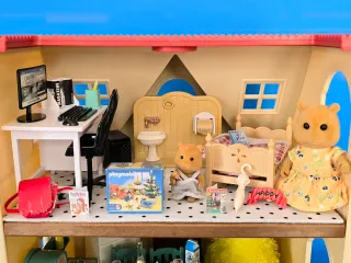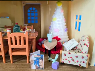 È arrivato il Natale alla Casa Sulvanian mod. 2023. Ottime condizioni generali. Sono compresi tutti gli arredi, gli accessori presenti in foto ed i 3 personaggi. È inclusa anche la postazione da lavoro con il computer. L'albero di Natale è un pezzo unico, realizzato a mano. Vedi tutte le foto per i dettagli. Il pavimento del secondo piano si può togliere e posizionare davanti alla casetta per ampliare lo spazio di gioco. Spedizione veloce ed imballaggio accurato. Molti altri Sylvanian nel mio armadio.