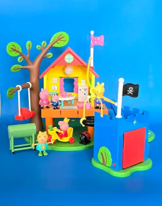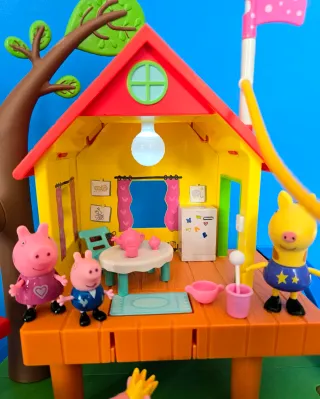 La casa sull'albero di Peppa Pig e i suoi amici in Ottimo Stato con il fortino di George ed il Barbecue. Il lotto include tutte le parti originali ed anche i 5 personaggi. Schiacciando il pulsante sul tappeto accende il lampadario, scivolando nel fango si attivano tanti suoni. Batterie nuove già inserite. Scorri tutte le foto per vedere ogni dettaglio.Trovi altri pupazzi, libri e giochi di Peppa nel mio armadio. Spedizione veloce ed imballaggio accurato.