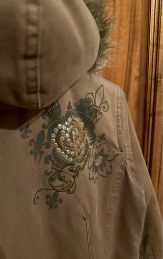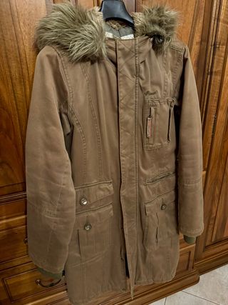 Giaccone lungo da donna, perfetto per le giornate più fredde. - Cappuccio con pelliccia sintetica. - Tasche frontali con bottoni. - Dettagli con zip.