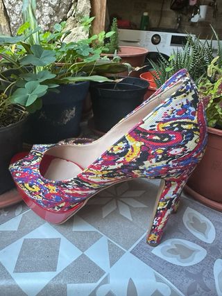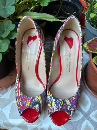 Eleganti scarpe con tacco Essere Originale. - Design peep-toe. - Fantasia vivace e colorata. - Tacco a spillo.