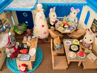 Alla Pizzeria del Villaggio Sylvanian mod. 5324 è arrivato il Natale. La nostra Orsetta Chef ed i suoi amici vi accoglieranno nella loro bellissima Pizzeria. Il lotto è ricco di dettagli e personaggi ed include tutto ciò che vedi nelle foto. Utilizzato poco ed in ottime condizioni. L'Albero di Natale è realizzato a mano. Spedizione veloce ed imballaggio accurato. Adesivo bancone utilizzato.