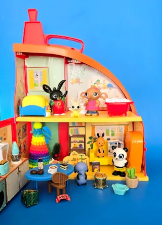 Alla grande casa di Bing marchio Giochi Preziosi è arrivato il Natale! La Maison si riempie con tutti gli amici ed è pronta per far brillare gli occhi del tuo bambino. Il lotto comprende sia la casa con tutti i suoi accessori originali. Tutto si trova in ottime condizioni ed è stato trattato con cura. L'albero di Natale ed il tappeto sono pezzi unici creati a mano. La casa è facilmente trasportabile dai bambini grazie alla sua comoda maniglia superiore removibile. PERSONAGGI NON INCLUSI. Adesivo sala leggermente tagliato