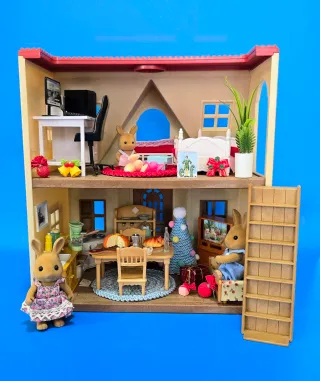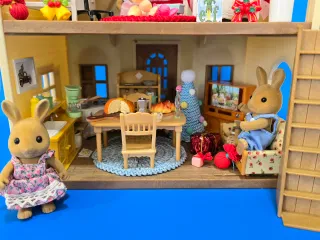 È arrivato il Natale alla Casa Casita Sylvanian mod. 2778. Ottime condizioni generali. Sono compresi tutti gli arredi, gli accessori presenti in foto ed i 3 personaggi. Il frigorifero, gli sportelli ed i cassetti della cucina possono essere aperti. Vedi tutte le foto per dettagli. L'albero di Natale ed i tessili sono creati a mano. Il pavimento del secondo piano si può togliere e trasformare in un prato verde da posizionare davanti alla casetta per ampliare lo spazio i gioco. Spedizione veloce ed imballaggio accurato. Trovi nel mio armadio molti altri Sylvanian