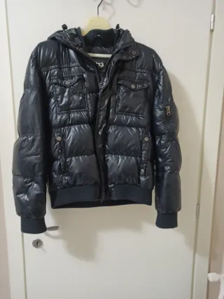 Elegante giubbino da uomo, perfetto per le giornate più fredde. Presenta un design moderno e dettagli curati. - Cappuccio integrato. - Chiusura centrale con zip. - Due tasche frontali con patta e bottone. - Polsini e fondo elasticizzati.