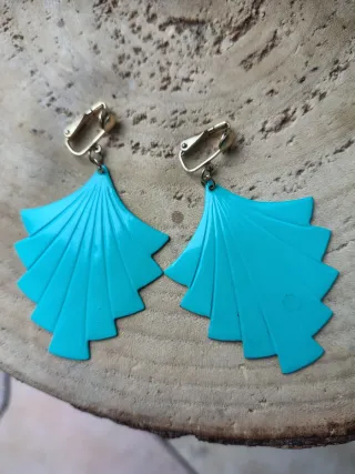 Eleganti orecchini a clip dal design a ventaglio. - Colore turchese vivace. - Montatura color oro. - Stile vintage.