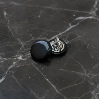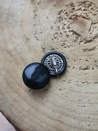 Eleganti orecchini clip vintage neri con dettagli argentati. - Design rotondo e piatto. - Dettaglio decorativo a raggiera sul retro.