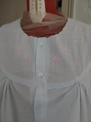Camicia da notte leggera e confortevole, misto cotone e acrilico indossabile dalla 50 alla54 - Scollo rotondo con bottoncini. - Maniche corte. - Dettagli ricamati floreali sul petto.
