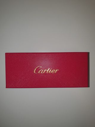 Elegante scatola Cartier di colore rosso. - Logo Cartier dorato stampato. - Texture a grana fine.