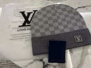 Berretto Louis Vuitton con un design a scacchiera. - Logo Louis Vuitton applicato. - Fascia inferiore in tinta unita.