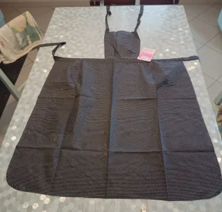 Vendo due grembiuli da cucina con una fantasia a pois bianchi su sfondo scuro e fantasia a fiorellini Perfetto per proteggere i tuoi abiti durante la preparazione dei cibi. - Fantasia a pois bianchi e fiorellini - Tessuto resistente.