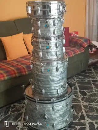 Set di batteria acustica Ludwig Classic degli anni '60. Un pezzo da collezione per veri appassionati. - Finitura in metallo lucido. - Componenti originali dell'epoca. Spedizione da concordare con l'acquirente