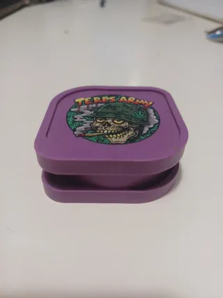 Contenitore Terps Army di colore viola. - Design con teschio e cappello militare. - Finitura opaca.