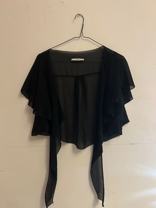 Elegante coprispalle velato, perfetto per completare ogni outfit. - Tessuto leggero e trasparente. - Design con maniche a campana. - Laccetti anteriori per chiusura.