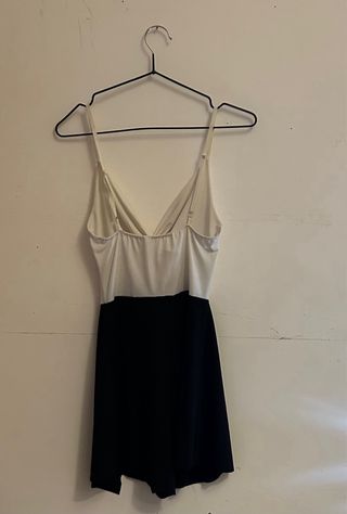 Tutina elegante con un design bicolore. La parte superiore presenta un dettaglio a nodo che aggiunge un tocco di stile. - Design a due colori. - Dettaglio nodo sul corpetto.
