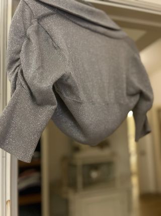 Elegante coprispalle con fili metallici dorati e argentati. - Tessuto leggermente scintillante. - Maniche corte. - Scollo ampio e morbido.