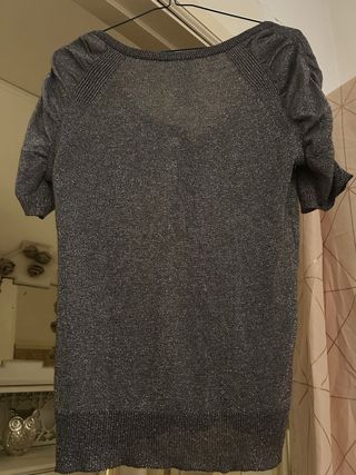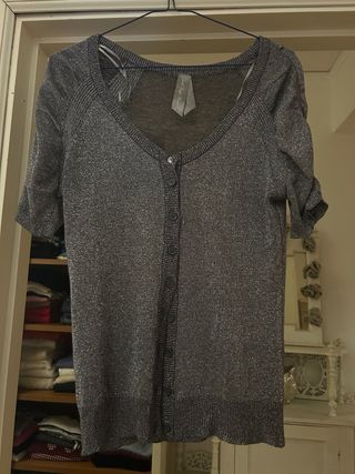 Elegante maglioncino con un tocco scintillante. - Maniche corte. - Chiusura con bottoni. - Tessuto leggermente brillante.