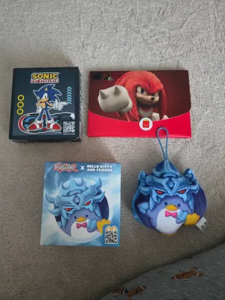 Set di giochi Happy Meal. - 1x Confezione Sonic The Hedgehog. - 1x Confezione McDonald's con Knuckles. - 1x Confezione Yu-Gi-Oh! x Hello Kitty and Friends. - 1x Peluche a tema Yu-Gi-Oh! x Hello Kitty and Friends.