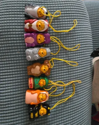 Set di portachiavi a tema Winnie The Pooh, con personaggi Peek a Pooh. - Ogni portachiavi presenta un personaggio diverso. - Realizzati in plastica colorata. - Dotati di cordino giallo per appenderli.