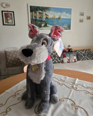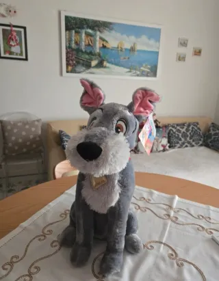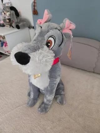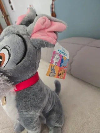 Peluche del personaggio Disney Il Vagabondo. - Morbido peluche grigio. - Dettagli con orecchie rosa e collare rosso. - Medaglietta dorata sul petto.