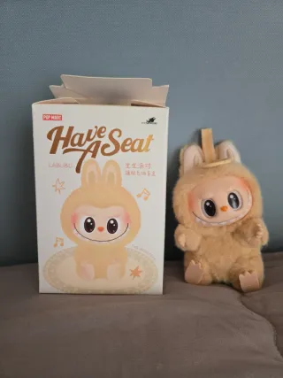 Box originale della serie Have a Seat di Popmart, con protagonista il personaggio Labubu. - Personaggio: Labubu - Serie: Have a Seat - Marca: Popmart - Tipo: Blind box in peluche