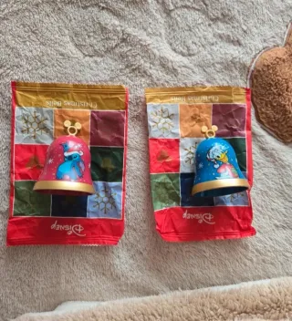 Set di campanelle Disney a tema natalizio, con Stitch e Paperino. Perfette per collezionisti o per decorare. - Personaggi: Stitch e Paperino - Tema: Natale - Marchio: Disney - Distribuzione: Conad