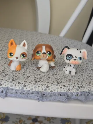 Set di 3 simpatici cagnolini Littlest Pet Shop. - Un cagnolino bianco e arancione. - Un cagnolino marrone e bianco. - Un cagnolino bianco con macchie nere. Anche singolarmente a 5 euro