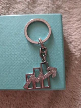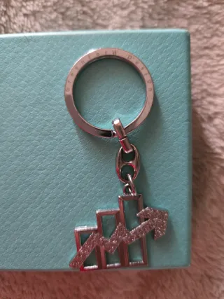 Portachiavi con un design a grafico finanziario. - Portachiavi in metallo. - Design a grafico con freccia in salita.
