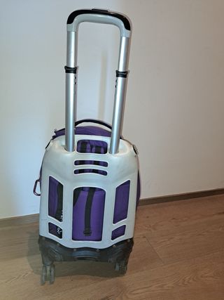 Zaino trolley per la scuola, perfetto per le bimbe. - Colore viola con stelle multicolori. - Ruote integrate per un trasporto facile. - Manico telescopico. - In buone condizioni.