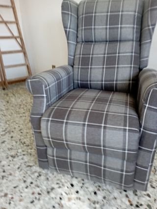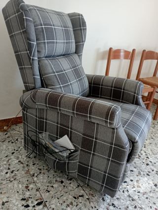 Poltrona relax con funzione alzapersona, usata pochissimo. - Tessuto a quadretti grigio e bianco. - Seduta comoda e avvolgente.