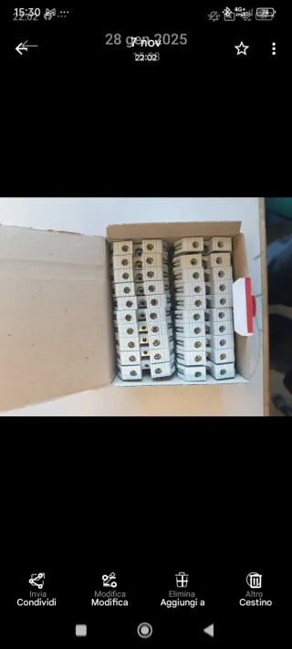 Lotto di morsetti per barra DIN, ideali per collegamenti elettrici. - Materiale isolante bianco. - Viti per il fissaggio dei cavi. - Design compatto.