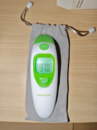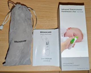 Termometro a infrarossi Broadcare, modello BC-2003, per fronte e orecchio. - Funzione dual mode fronte e orecchio. - Display digitale per una facile lettura. - Include custodia protettiva. - Manuale utente fornito.