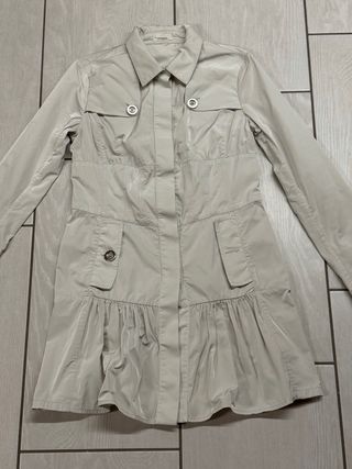 Elegante trench Pinko color beige, un capo versatile per ogni occasione. - Design con collo a camicia. - Chiusura frontale con bottoni. - Tasche applicate sul petto e sui fianchi. - Fondo con balza arricciata.