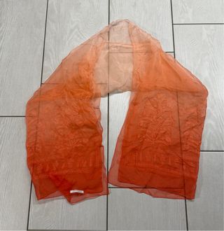 Elegante foulard Intrend con un bellissimo effetto sfumato. - Tessuto leggero e trasparente. - Motivo decorativo lungo i bordi. - Gradiente di colore dall'arancione al rosa.
