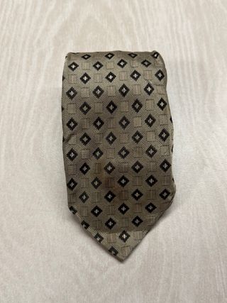 Cravatta in seta vintage Versus Versace con un motivo a rombi. - Tessuto in seta. - Motivo a rombi neri su fondo oro. - Design classico.