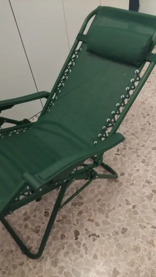 Comoda sdraio pieghevole, perfetta per rilassarsi all'aperto. - Struttura in metallo resistente. - Seduta e schienale in tessuto.