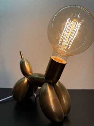 Lampada di design a forma di cane palloncino. - Struttura in plastica placcatura color oro. - Lampadina a filamento grande inclusa. 27 cm altezza