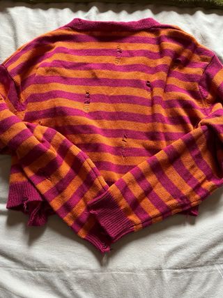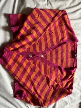 Cardigan a righe con bottoni, taglia S/M, in lana - Fantasia a righe orizzontali. - Chiusura con bottoni. - Dettagli strappati e consumati.