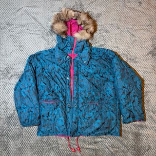 Giacca vintage con cappuccio bordato di pelliccia sintetica. - Cappuccio con pelliccia sintetica. - Chiusura frontale con zip - Reversivile