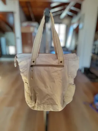 Borsa Tote Tela Bianca e Beige