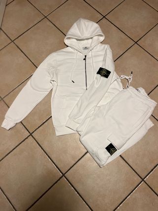 Completo Stone Island composto da felpa con cappuccio e pantaloni. - Felpa con zip frontale e cappuccio. - Logo Stone Island sulla manica sinistra. - Pantaloni con tasche laterali e tasca cargo. - Logo Stone Island sulla tasca cargo.
