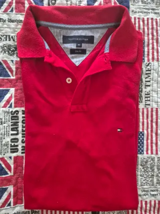 Polo tommy hilfiger rossa. Taglia M. Piccolo difetto nella manica ultima foto.