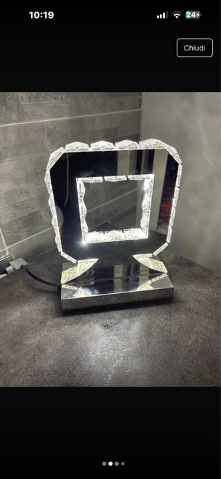 Elegante lampada da comodino con un design moderno e raffinato. - Struttura in vetro e metallo. - Rifiniture trasparenti e argentate. - Perfetta per aggiungere un tocco di stile alla tua camera.
