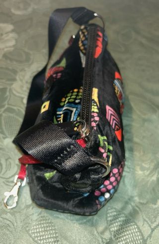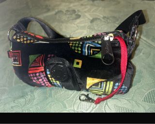 Borsa Kipling con un vivace pattern geometrico. - Tessuto vellutato nero. - Dettagli colorati.
