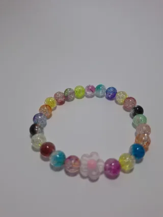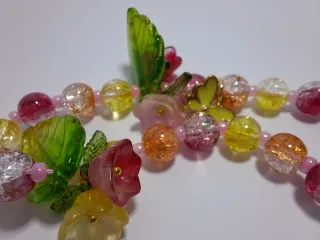 Delicato bracciale realizzato con perline di vetro. - Design con fiori. - Chiusura a moschettone dorata.