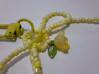 Grazioso portachiavi realizzato a mano con perline gialle e bianche, a forma di fiocco. Fatto a mano - Decorato con un piccolo fiore giallo. - Dettagli con perle trasparenti. - Moschettone giallo per aggancio. Anche personalizzazioni su commissione #fattoamano #perline #portachiavi